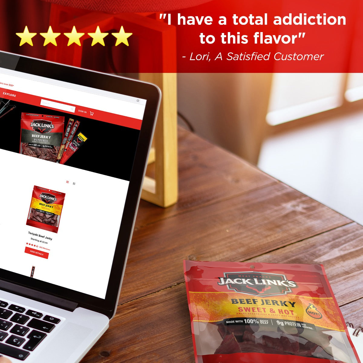 Fulfill all your cravings with our instant classic Sweet & Hot Beef Jerky. We use a delicious mix of brown sugar, fiery red chili peppers, and other flavorful ingredients to season our lean beef. Then, we slow cook and smoke every slice until they reach the perfect tenderness that makes our beef jerky easy to chew. This mouthwatering jerky is made with 100% beef and slow smoked until our meat reaches the tenderness you know and love from Jack Link’s. Enjoy the satisfying flavor of our devilishly daring snacking experience and never let anyone tell you can’t channel your inner savage. Unleash your potential with Jack Link’s Sweet & Hot Beef Jerky and make Sasquatch® proud.